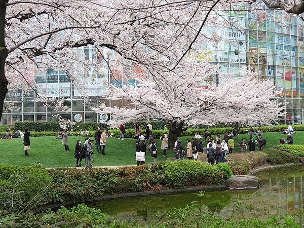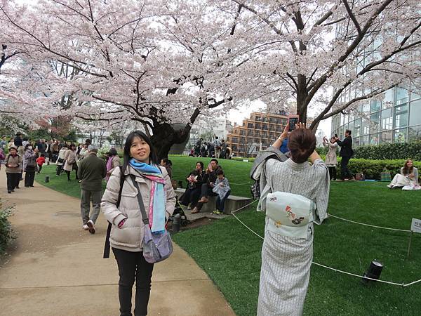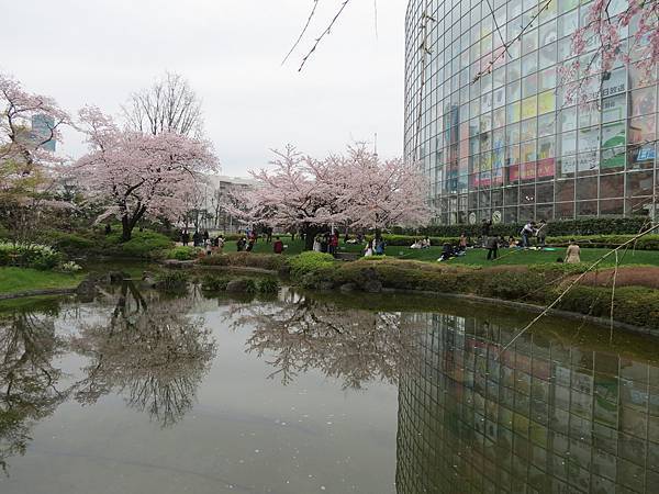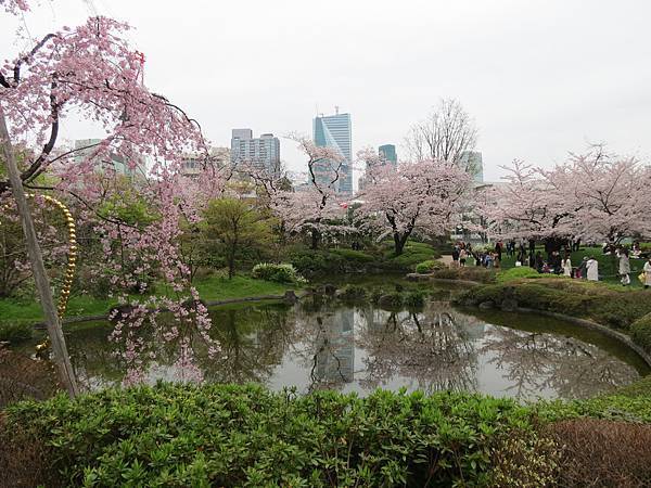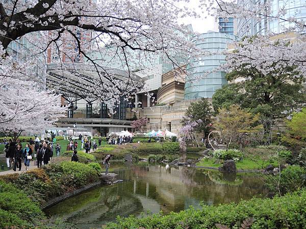 毛利庭園的範圍不大,但櫻花圍著生態湖盛開,景緻頗佳