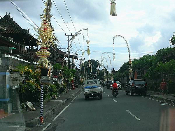 沿路也看到不少這種長長的竹竿,後來私訊問了我們的司機,原來這叫做Penjor,是峇里島人民為了每半年一次的大祭典而製作的裝飾品。