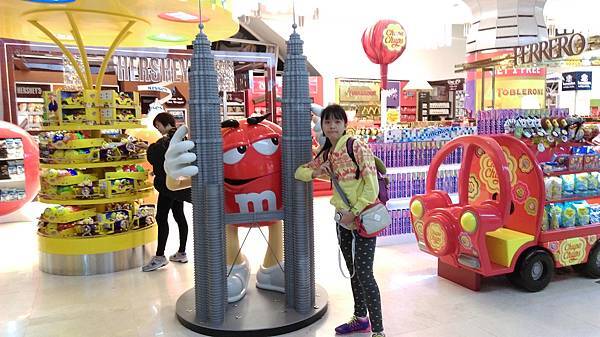KLIA2有很多賣巧克力的商店,這家M&M巧克力有超可愛的大公仔和雙子星大廈