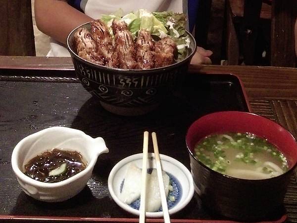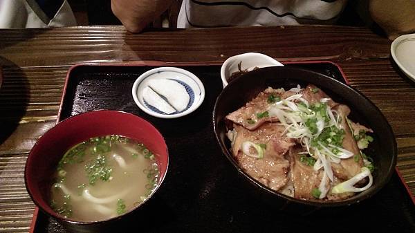 島豚丼¥1080,肉片有經過燒烤過,白飯和上湯汁,超下飯的!還附上一小碗的沖繩湯麵。