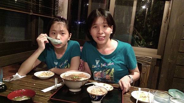 這一餐明明就只有4個餐,但再加上附餐又是麵又是湯,全家吃得好撐!台幣不到1000元喔(匯率0.26計)!