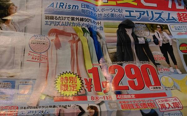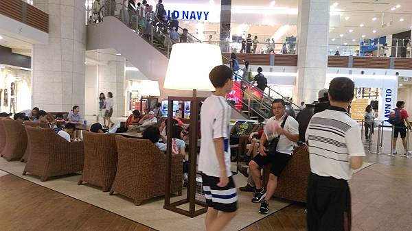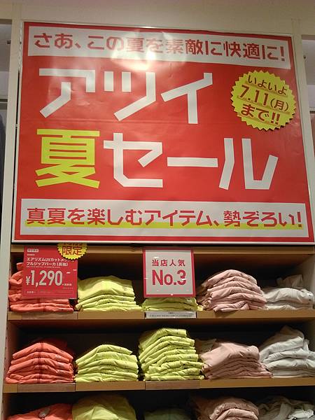 我們在uniqlo逛了好一會兒,本來都要結帳了,但看到這個「いよいよ7.11まで」的字眼,完全看不懂日文的我們去問店員,到底是「到7/11止」還是「只限7/11」呢?結果店員不懂我們的英文,她的回答讓我們以為「只限7/11」,因為特價相當於打了對折,所以我只好忍痛放棄,再看7/11有沒有時間到美國村附近那邊的分店去買了。也為了要湊免稅額,其他的衣服也就暫時先割捨了。這麼大的購物中心我們竟然空手而回!?(還好後來我們都有買到~~)