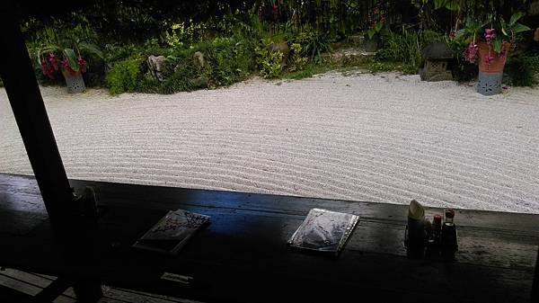 戶外的沙石也整理得太功夫了吧!如果有抽菸的人就可以在戶外用餐。