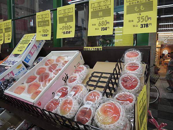 水蜜桃價格感覺也不怎麼親民,1粒至少300日圓,怎麼跟我之前在東京買的都貴了1倍以上呢?