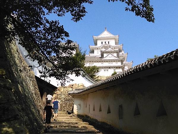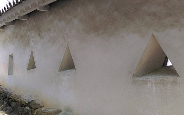 姫路城牆有三角形、圓形、四角形的洞口,叫作「狹間」,是弓箭或鐵炮的射擊孔,内側的開口較大,外側開口較小,這樣的設計確保作戰的時候,不易受攻擊。