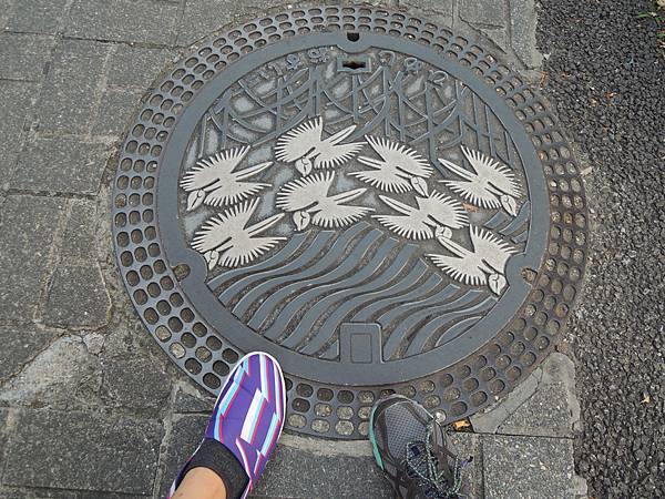 姬路城有著白色的外牆,也被稱為白鷺城,所以還有這種白鷺圖案的人孔蓋。