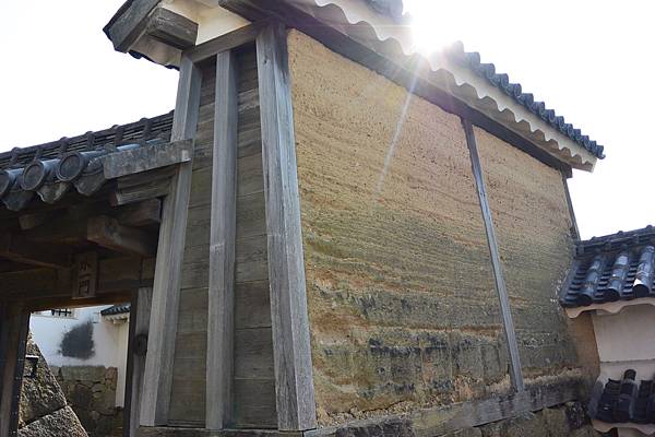 這面牆是姬路城建造之初保存至今的「油壁」,用黏土加礫石,再用洗米水凝固,這樣竟能這麼堅固還真不可思議!