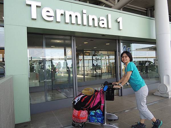 下午4:05的航班,我們還不到12點就抵達機場了。終於可以卸下接近10公斤的行李了!