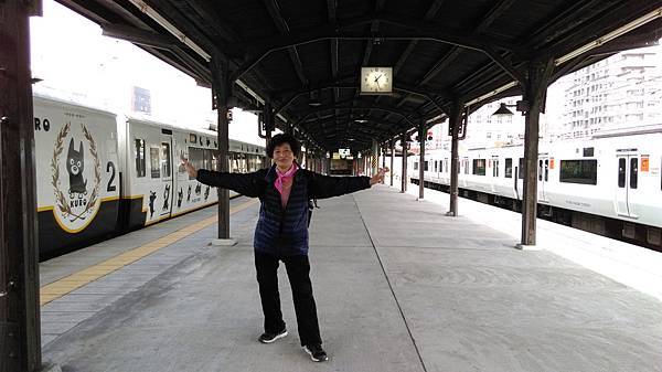 抵達門司港 ,人去月台空,愛拍照的母女倆繼續留下歷史鏡頭,哈哈!