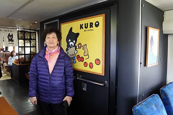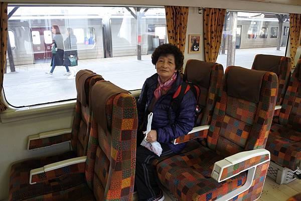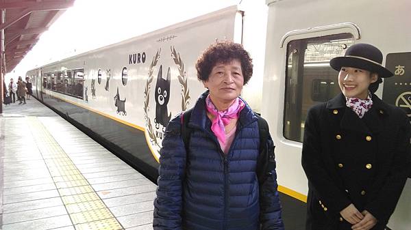 第二趟搭阿蘇男孩時我們才有在座位上休息一下,車掌小姐過幫我們拍了紀念照。