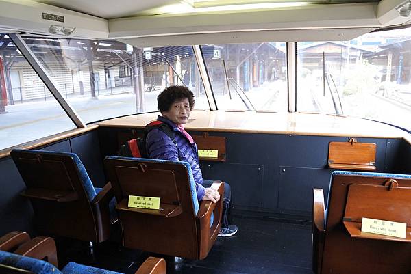 回程那趟我們看展望席都沒人坐,便在這坐了一會兒,感覺就像自己在開火車一樣,真的好過癮,但才爽一下下就有乘務員來趕人了。除了非指定席的公共空間座位可以隨意坐,有標示指定席的座位就算沒人也不能坐喔!