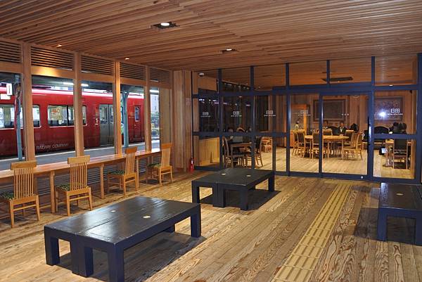 由布號有指定席和自由席,車廂也是採用木質地板,置物櫃雖然不是封閉式的,卻也採用了一系列的木板層架,感覺很調和。