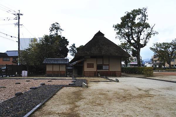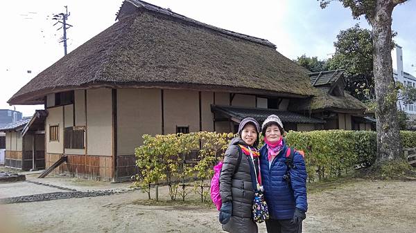 我們身後的秋風庵是淡窗伯父的住宅,屋頂採用跟合掌屋相似的建造方式,以厚厚的茅草覆蓋。