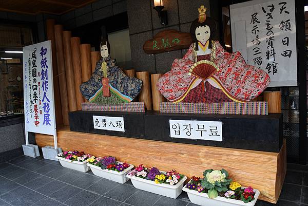 天領日田はきもの資料館門口大大的和紙人偶吸引我們的目光。這人偶跟我部落格的版頭一模一樣耶!