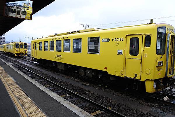 這輛停靠車站的Y-125DC平時在日田和久留之間行駛,鮮黃色的車身非常醒目,日本火車顏色不少是這麼鮮豔,特別吸引人。