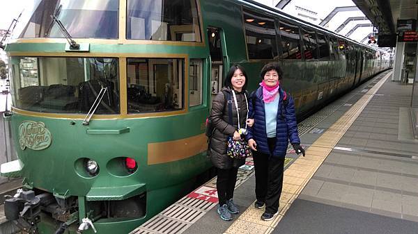 因為多數乘客都在博多上車,大概只有我們在日田上車,所以一上車乘務員就來幫我們拍紀念照啦!
