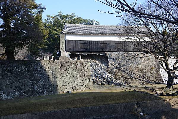 2016年4月熊本大地震後,熊本城受傷最重,可以明顯看到城牆崩落,整個復原重建工程至少10年以上,我們在護城河外的步道上遙嘆!