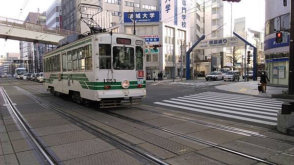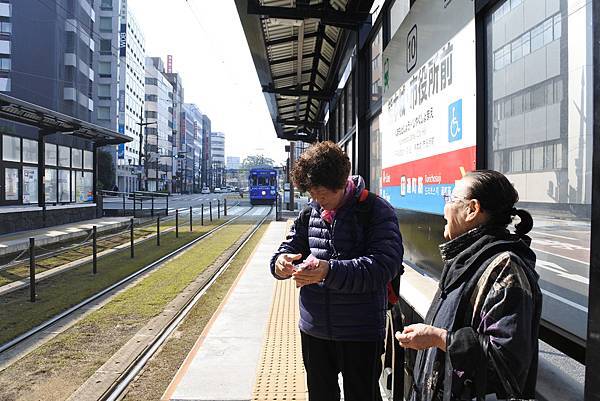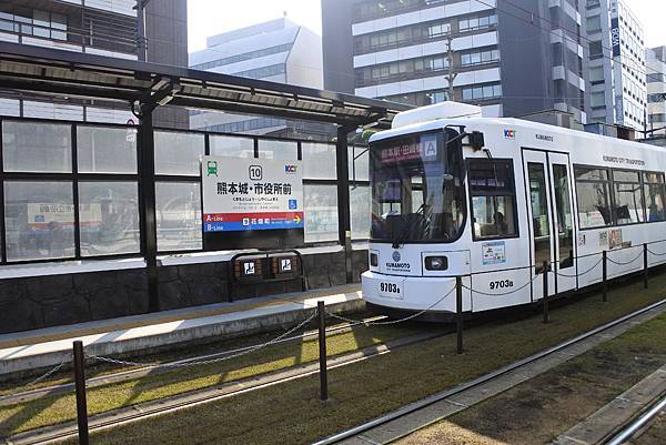 離開城彩苑後,我們沿著護城河到「熊本城市役所前」搭市電到水道町下車,其實只有兩站,但買了一日券就給它搭車囉!
