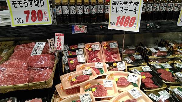 在美食街旁的超市看到不少和牛,價格因等級部位價差很大。其實就算最便宜的換算台幣1斤都要1200元,加上住飯店也沒有廚房,所以也從沒想過要買來吃。