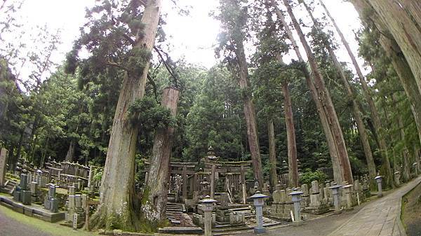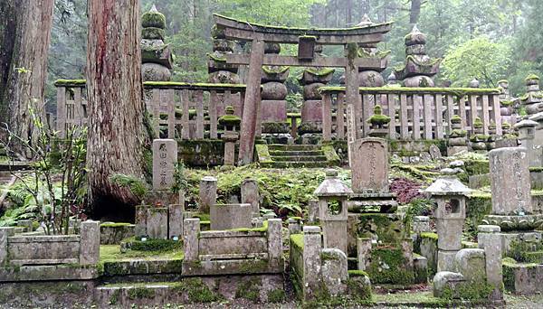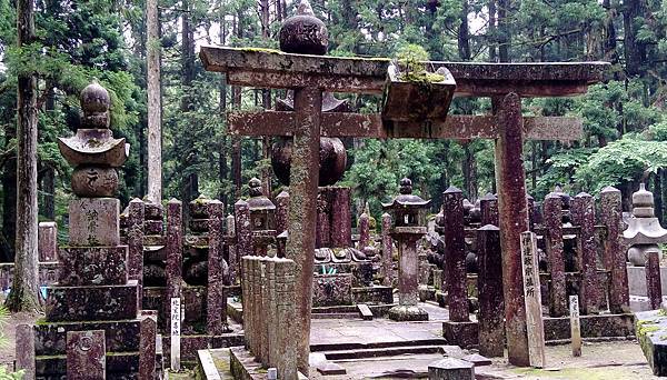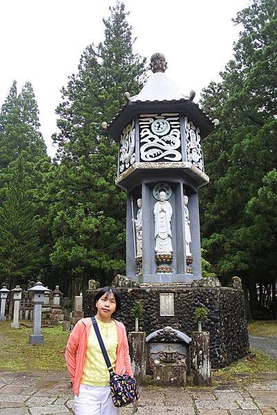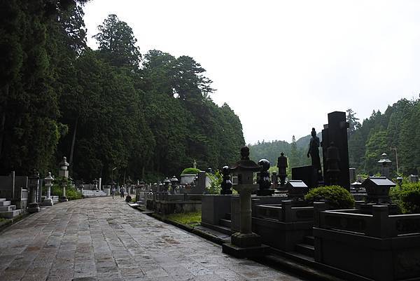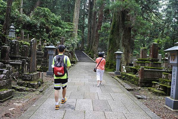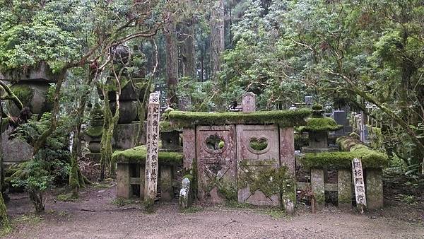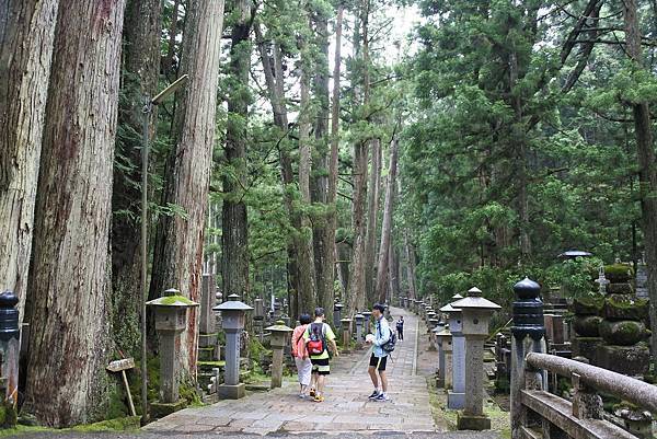 這段2公里的「奥之院参道」有多達二十多萬座古墓和靈塔環繞在參天古木之中,其中不乏日本知名歷史人物,如豐臣家族、織田信長、伊達政宗等都長眠於此(也有說應當只是衣冠塚)。難怪觀光客以歐美遊客居多,中國和台灣遊客卻幾乎沒看到,大概是比較忌諱吧!不過對喜愛電玩的兒子來說,尋找日本戰國歷史人物的墓塚反而讓這段路更具歷史情懷。不過墓園實在太大了,我們並沒有花太多時間一一去找尋,只是當作是在參天巨木中散策。