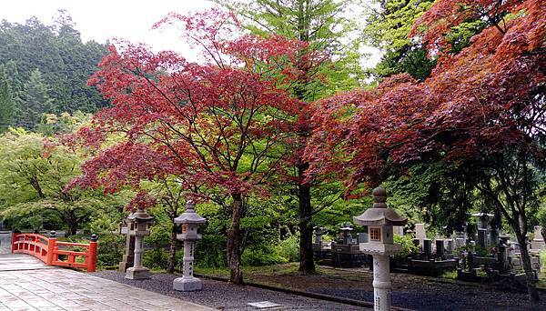 走到奥の院参道盡頭,就在御廟前看到這片楓紅很興奮!