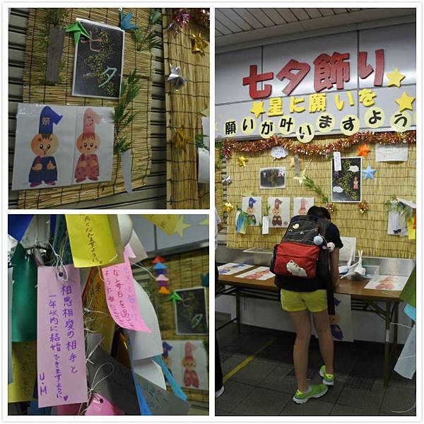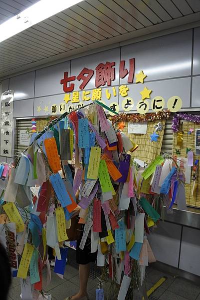 在南森町站也看到七夕飾り,在竹支上掛了一層又一層的寫滿心願的長條紙,有各式各樣的顏色。