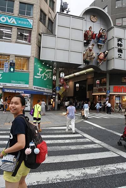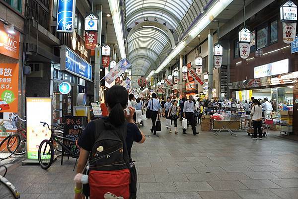 我們沿著天神橋筋往南走,那麼長的商店街卻都沒時間逛了。因為要趕7:20到南天滿公園觀賞【平成大阪銀河傳說】的放流時間,中間又會先經過大阪天滿宮【星愛七夕祭】的祭典,不想來回多走路,只能視而不見了。