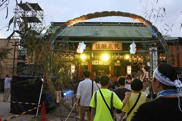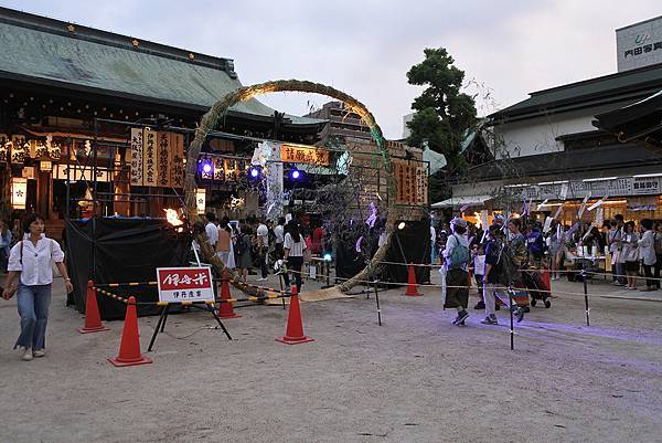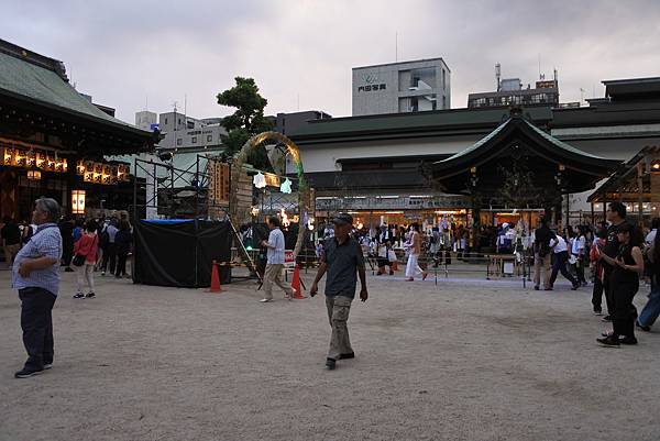 據說有7個茅輪,最大的是這個「諸願成就」,另外還有「学徳向上」、「心身健康」、「家内安全」、「商売繁昌」、「厄除」、「恋愛成就」,不過應該散落在整個天滿宮吧!我們只看到這個最大的茅輪,跟著人群一起穿越祈福。