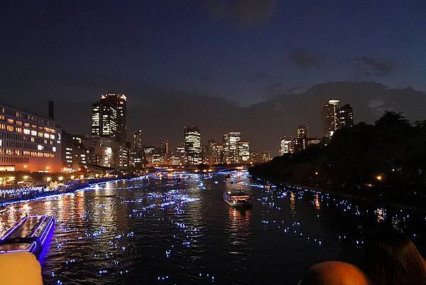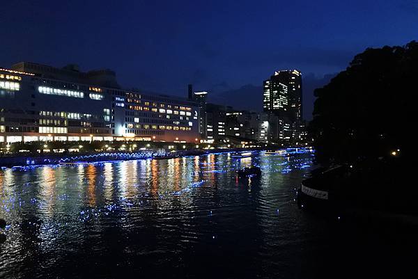 【平成大阪銀河傳說】是在七夕之夜,將數萬個LED光球祈願星一齊放流到中之島「天滿川」,利用入水時發光的原理,將整個河面呈現出如夢幻般的、熠熠閃爍的地上銀河,一年一度難見的奇景!親臨實境果然令人讚歎!