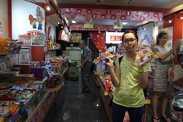 結果在「お菓子のデパートよしや」看了看,很多巧克力在唐吉訶德和京都的大國藥妝都買過了,結果只買幾包蒟蒻,才花¥605,一整個弱掉!後來我覺得我應該要去業務超市掃一些一大包才台幣23元調理包才對,反正我們行李空間還很有得裝哩!