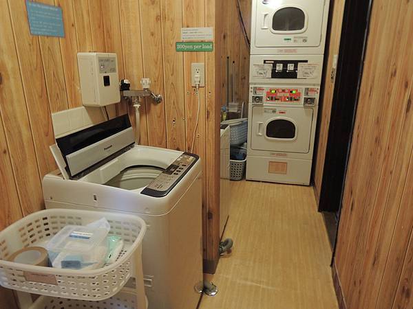 1樓浴室外有投幣式洗衣機和烘乾機,省錢一姐自己洗一洗扭乾晾陽台。