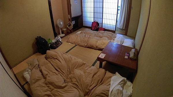 以雙人房來說,房間算大了,我們是選雙床型,一人一張床墊和被子,很舒服,但得自己鋪床喔!退房時還得把用過的床單被套等拿去回收桶放置喔!