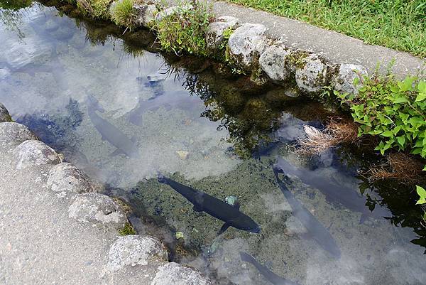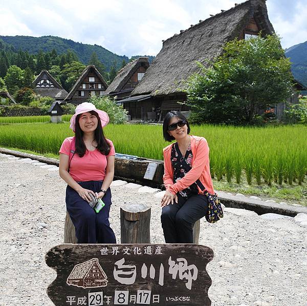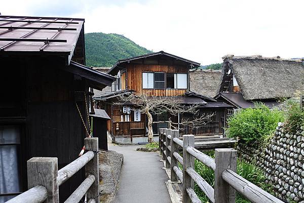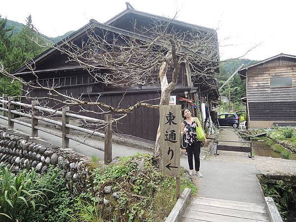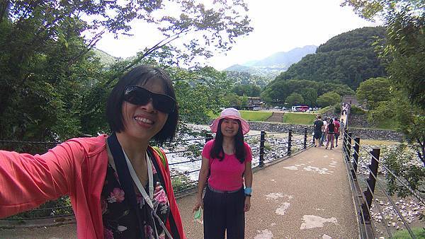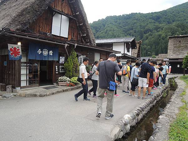 我們再度走過相逢橋,改走主街回到巴士站。遇到好多台灣團,我們還跟著其中一團走了一小段,聽到導遊介紹一些合掌村的典故。大家同時跟著導遊的指示望向屋舍旁的小溝渠,早期村民的飲用水都來自溝渠的水,為了確認飲用水的安全,所以養了一些魚確認水質乾淨無毒。