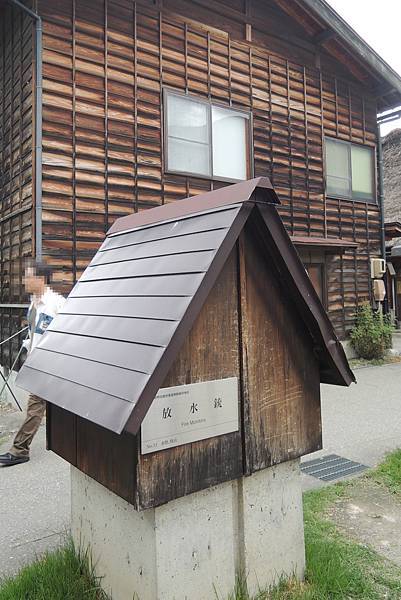 還有合掌村都是木造建築,所以消防設備特別注重。隨處可見的「放水銃」類似我們的「消防栓」,不過上面都有編號寫著某某家,就是為了在最短時間內立刻知道要用哪一個「放水銃」可以達到最好的滅火效果。