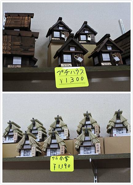 但我對這合掌屋的紀念品倒是有點興趣,不過一來背包客也實在無空間可帶;二來家裡也無處可擺,只好拍照帶回家紀念吧!