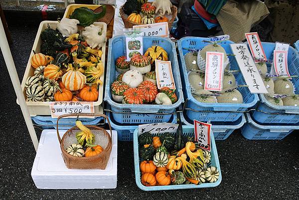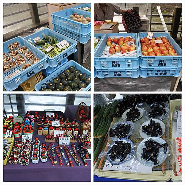 有許多農家販售自家的蔬果和漬物,還有手工藝品,像各種可愛造型的飛驒娃娃。