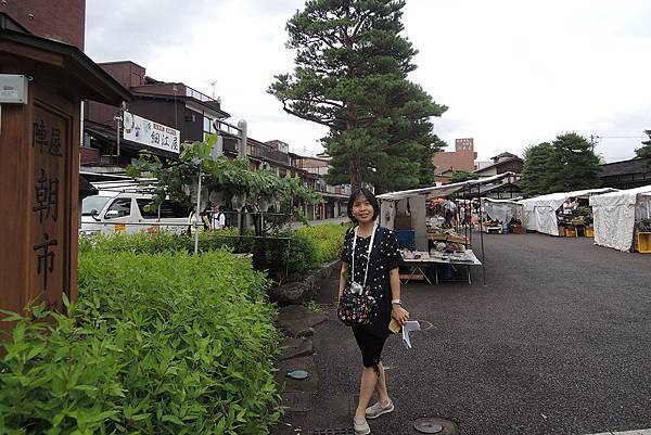 「陣屋朝市」顧名思義就是位在高山陣屋前的廣場上,高山陣屋是飛驒被納入德川幕府後,從江戶派遣來共25人代官、郡代執行行政、財政、警察等政務的辦公廳舍,不過我們太早來還沒開放,其實本來就沒打算參觀了,因為要另外買門票,光一些免費場館就快沒時間參觀了。