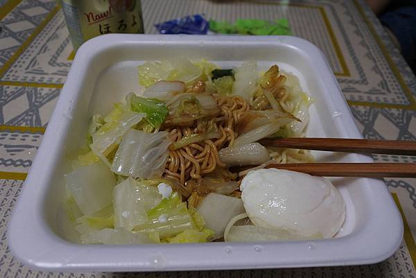 好友用熱水沖泡再加一顆半熟蛋,等不及我煮好要一起分享的大白菜,已經先開始享用她的晚餐了。