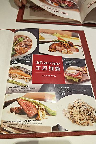 龍騰卡機場貴賓卡持卡人在昇恆昌桃園機場Bistro :D畢卓樂地餐廳可免費享用套餐(主餐+飲料),整本菜單的餐點都可以任選喔!我們當然就點其中最貴的2份主廚特餐囉!