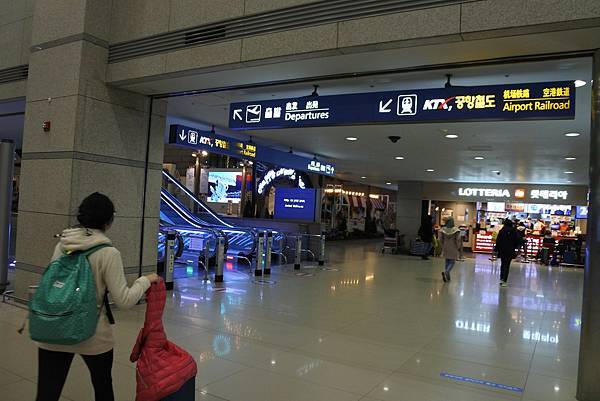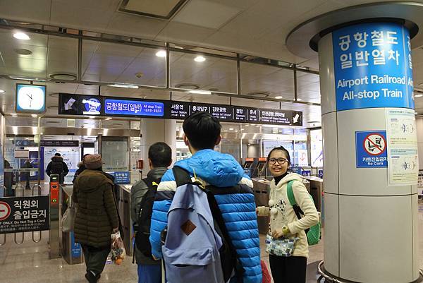 我們要去搭機場快線,一開始很自然沿著「機場鐵路」的指標走,走了一段忽然想到仁川機場快線的英文應該是AREX,而不是KTX,難道走錯了?趕緊問人,還好剛好問到中國人,他說搭地鐵往這沒錯。