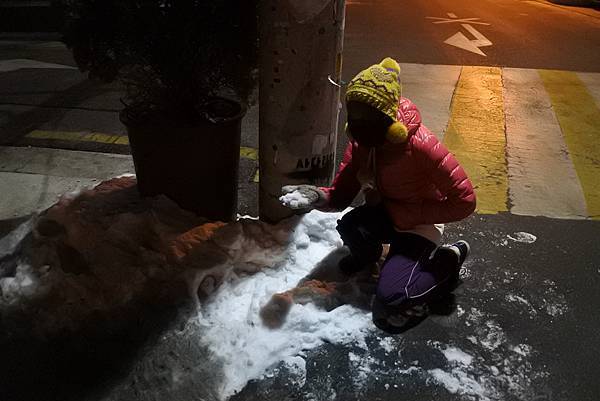 路邊的積雪是前一陣子首爾大寒的殘留,沒看過雪的小孩興奮踩雪、摸雪!