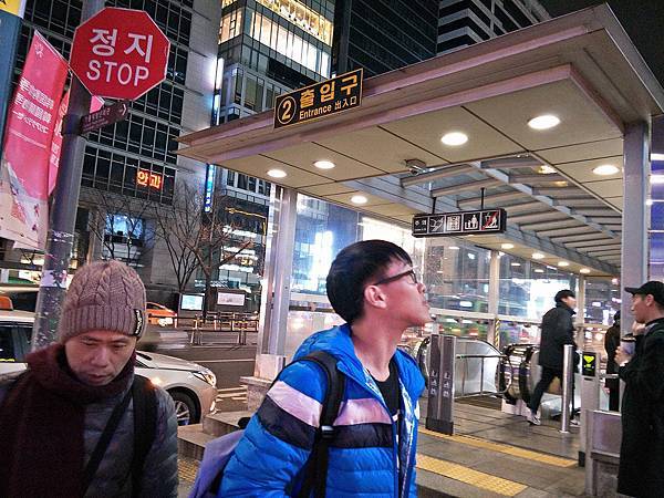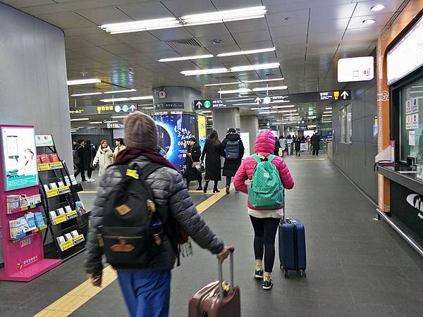 不過我們厚羽絨大衣都還沒拿出來穿,想說到了弘大下車後要出站前再穿就好了。