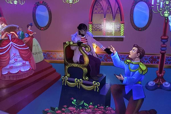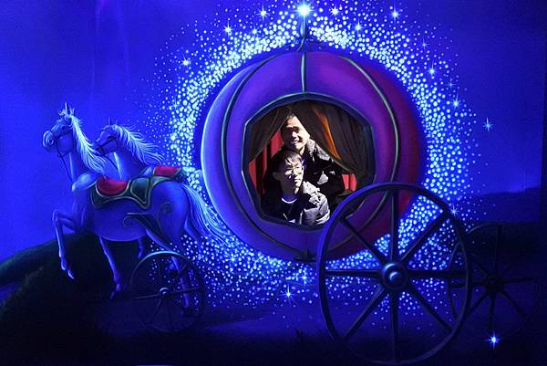 接著就要進入「光之童話世界」,這是2016年1月才成立的新展區,以灰姑娘、冰雪奇緣、愛麗斯夢遊仙境及阿拉燈神丁等童話故事為主題,利用燈光效果創造出一個超越現實的童話世界。