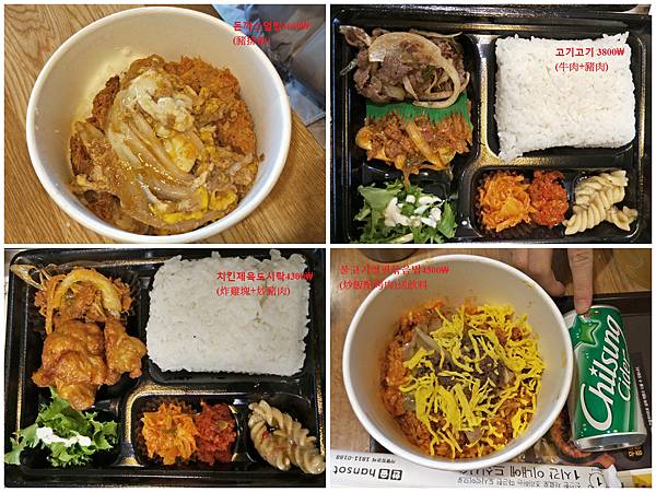 這4份餐點只要16200₩(台幣449元),最貴的1個也只要125元(首爾的物價跟東京差不多貴,隨便1份餐點都要將近300元,至少都是這裡的2-3倍價),是我們此行最便宜的一餐!而且我覺得口味還算不錯,雖然不像一般餐廳上桌時好幾碟的小菜,但其實一樣有附小菜呀,只是用一個便當盒裝在一起,一樣美味!