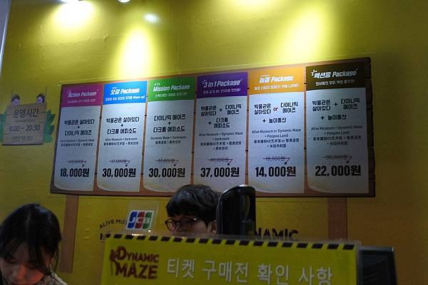 現場「愛來魔相4D藝術館+智勇迷宮」套票優惠18000₩,憑韓國購物季或旅遊網站的折價券有優惠,最低好像可以買到13000₩(約360元),而在Klook訂購只要326元,更便宜喔!