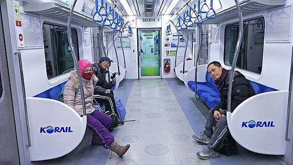 回首爾的京春線整個車廂一開始竟然只有我們一家人。