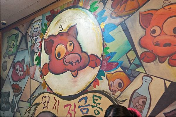 牆壁彩繪了小豬圖案,為何每隻小豬的眼睛都一大一小........
