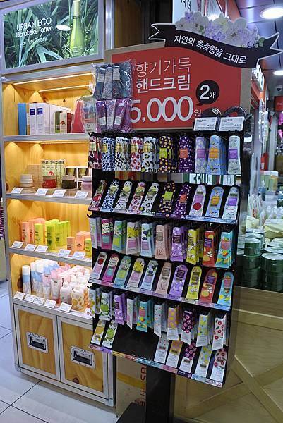 還有不少彩妝店,不過我們家的女士都沒在化妝保養的,只對護手霜比較有興趣,價格也不貴,一路買了不少,還可以拿來送親友!