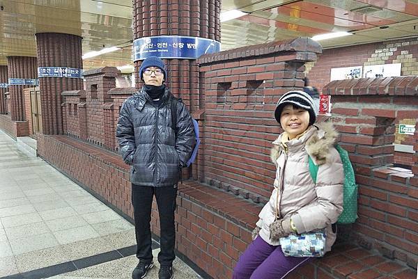 吃飽喝足還不到9點,照計畫是要去逛Homeplus的,是我們鑽入地下街走一段路之後再來就只能走出戶外的人行道,只是短短5-600公尺的路在寒風中舉步維艱,走沒幾步就決定放棄了;距離又短到不甘心搭計程車,還是回旅館休息吧!