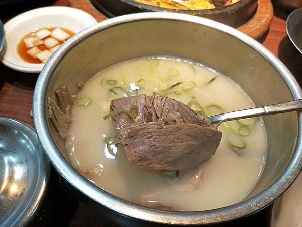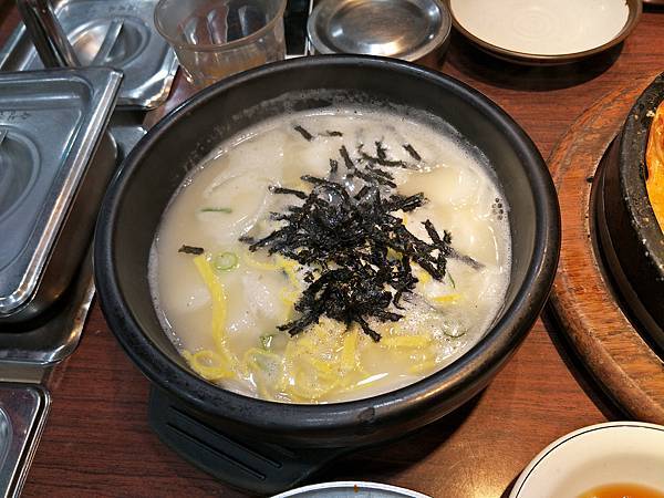 另外又單點了1個年糕雪濃湯(8500₩,約350元),我覺得韓國的年糕煮湯軟軟QQ的,非常好吃!不過這就沒有牛肉片了,有點小貴XDD